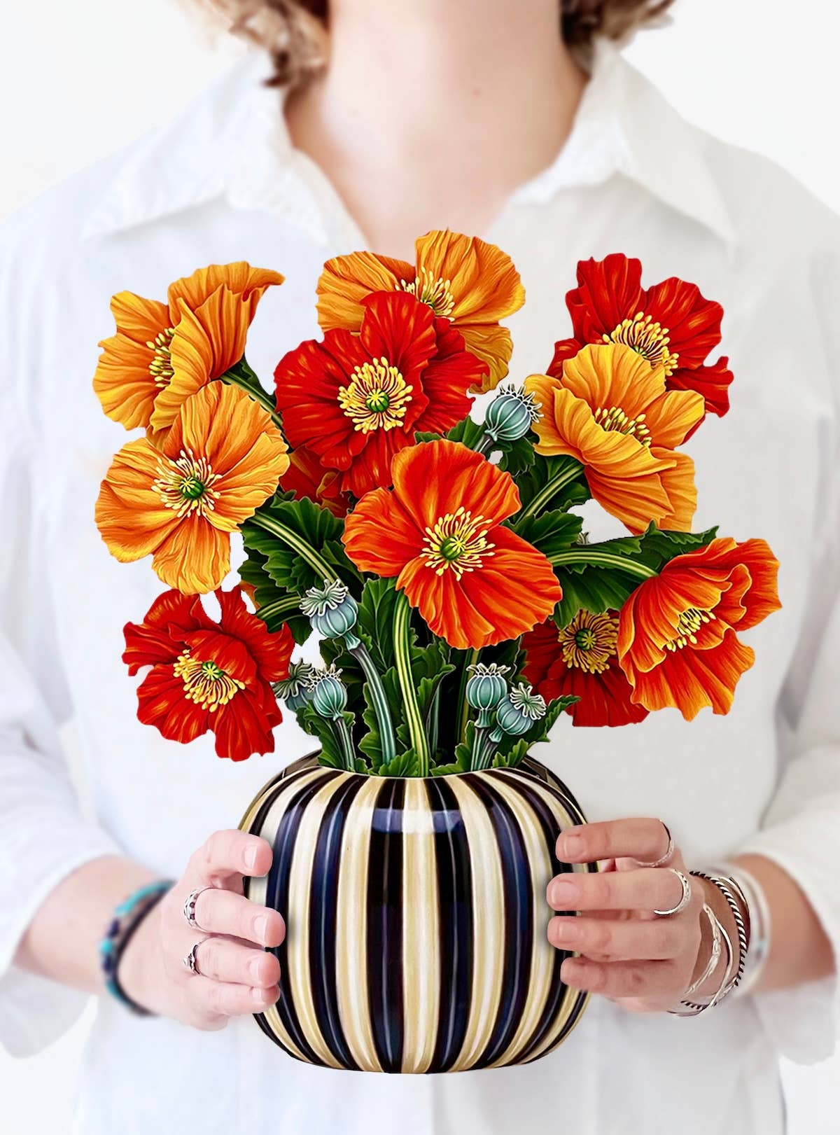 French Poppies (8 Flowers with envelope + notecard). Each pop up flower card includes a small blank coordinating notecard.