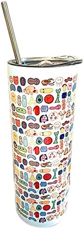 This high-quality double insulated stainless steel 20 ounce tumbler features dozens of colorful GIANTmicrobes and comes with stainless steel straw, splash-resistant lid and cleaning brush
