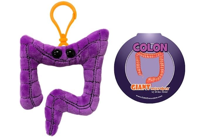Colon mini microbe (3") includes mini-tag and key chain clip.