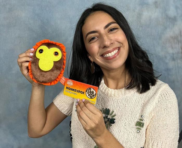 This adorable and educational plush representation of Monkeypox (renamed Mpox) provides an engaging hands-on-way to learn about microbes, science, and health. Memorable gift for family, friends, scientists, educators, public health professionals and anyone with a healthy sense of humor!