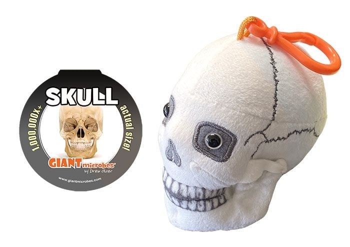 Skull mini microbe (3.5") includes mini-tag and key chain clip.
