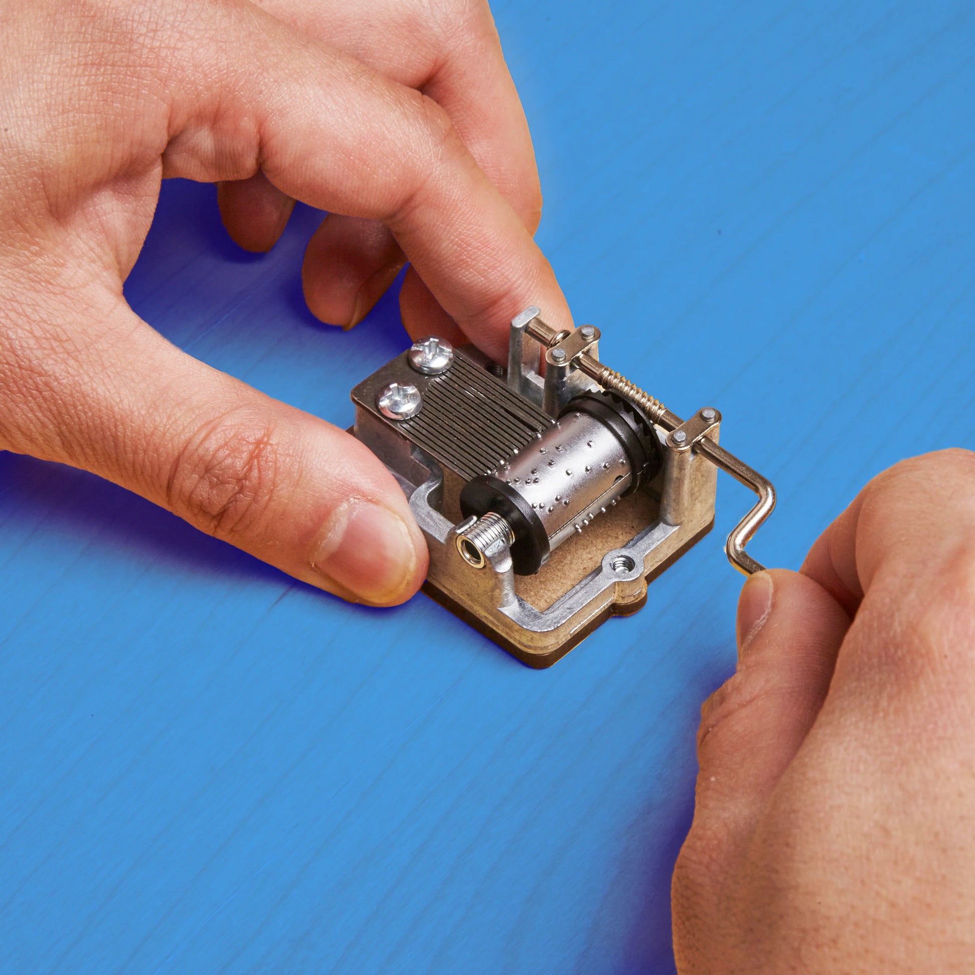 Turn the crank and immerse yourself in the timeless melody of the Original Crankshaft Music Box. No batteries needed. Crafted with durable steel, it's built to withstand the test of time.This heartfelt, musical gift will serenade you with The Wizard of Oz classic 'If I Only Had a Brain'—perfect for kids!