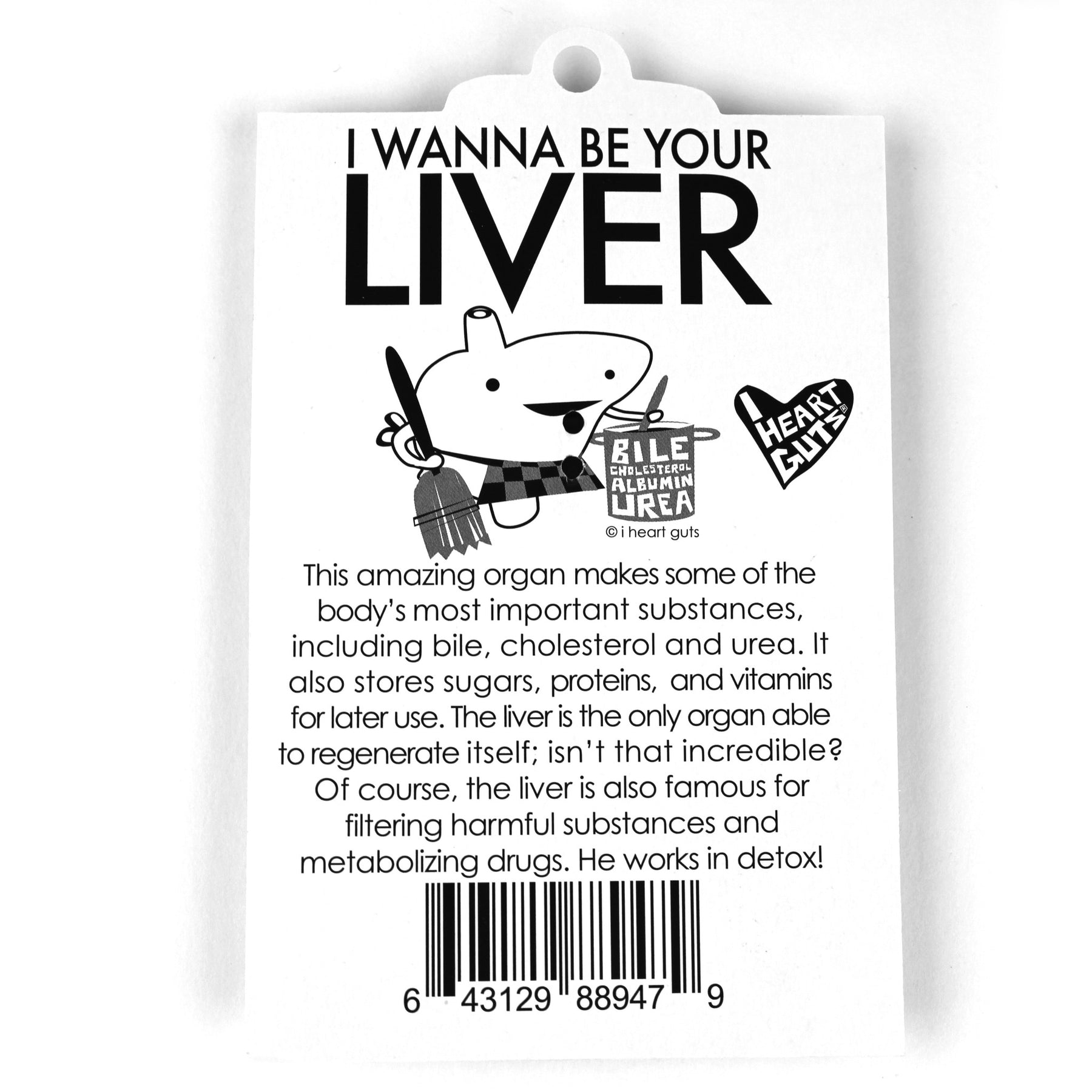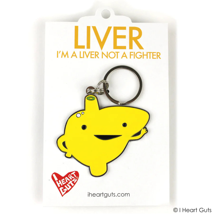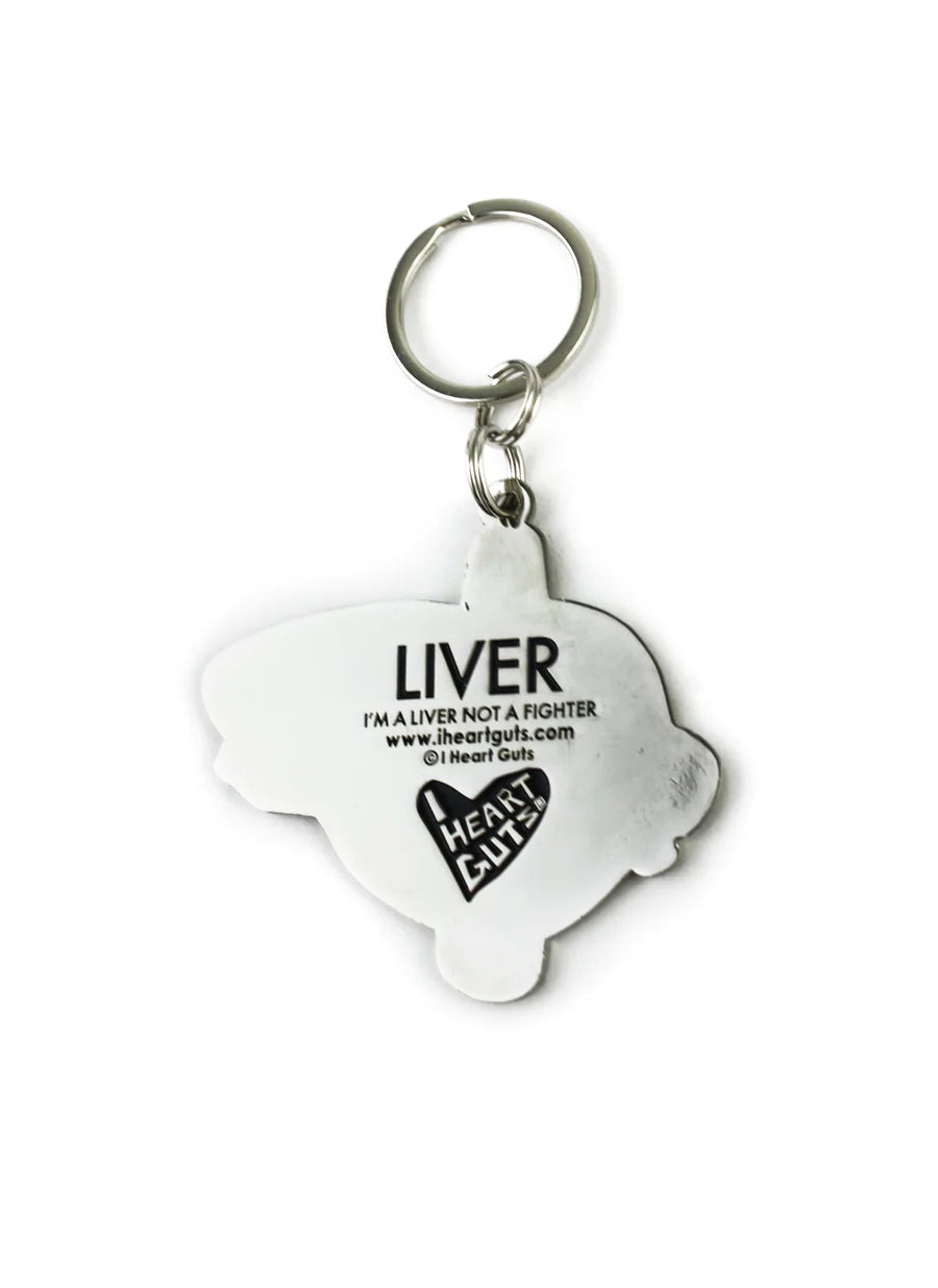 Never lose your liver -- or your keys -- again with this cute anatomical liver keychain. Enamel liver keychain measures 2.3” x 2”, engraved with "I'm a Liver Not a Fighter" on the back. Educational card describes a handful the 500-something essential jobs your liver performs daily. Metal liver keychain wipes clean and disinfects way better than your real liver. Designed in the U.S., made in China.