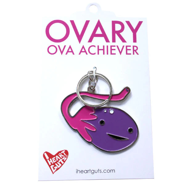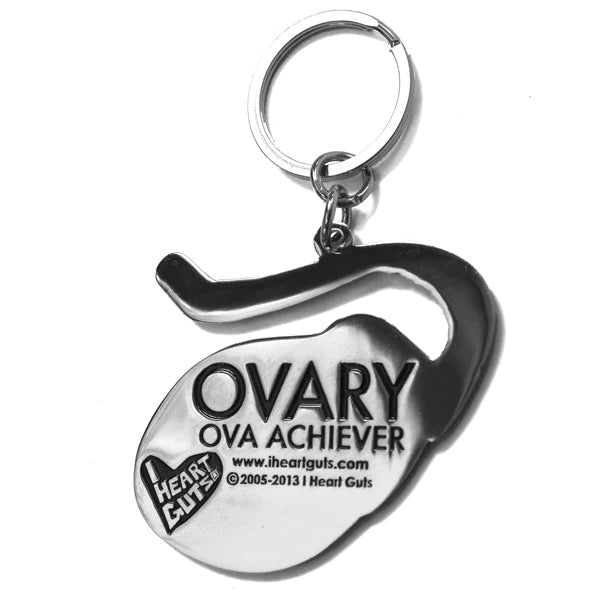 Gonad girl power graces this fab ovary keychain. Ovary keychains for the ova achiever in your life! Give the gift of ovarian hope and success -- great gifts for ovarian cancer patients, IVF champs, TTC journey-goers or OB/GYN in your life. Cute and funny ovary keychains spark joy for a midwife, doula, labor & delivery or post-partum nurse. Adorable for clinic bathroom keys. Ova and out, we'll see you ovu-later!