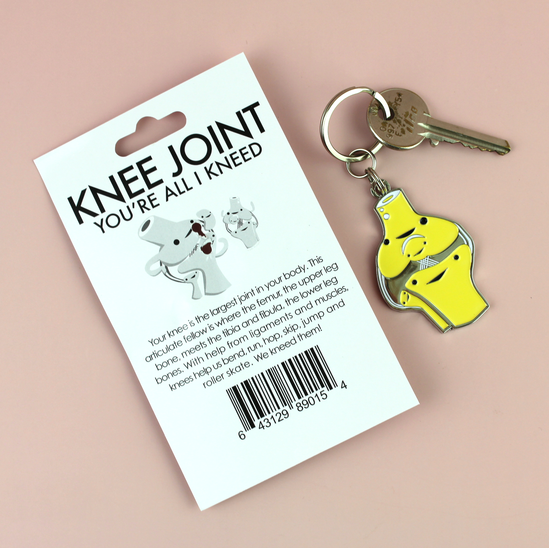 Keep knees crossed post-surgery with this cute enamel keychain designed for knee probs. Durable metal can take a beating!